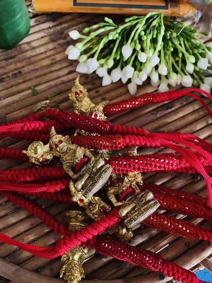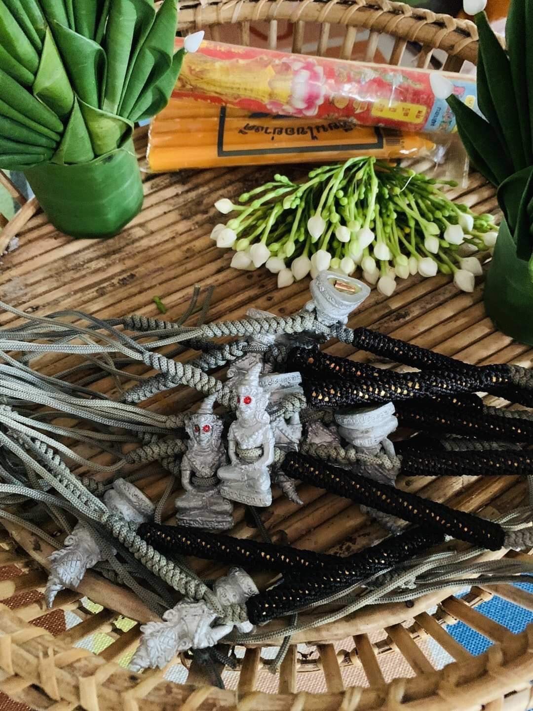 Bùa sử dụng đất 7 nghĩa trang, 99 phần mộ, rêu tảo mọc ở 9 di tích cổ, đất từ 9 ngọn đồi, 9 nhà hoang, bột 9 loại gỗ, tro cốt người bị sét đánh, đất từ nơi có người bị chết đuối, xương vụn người chết thu được từ lò hỏa táng ở chùa. , takrut và dầu Nam Man prai thiêng luyện trong nhiều năm.