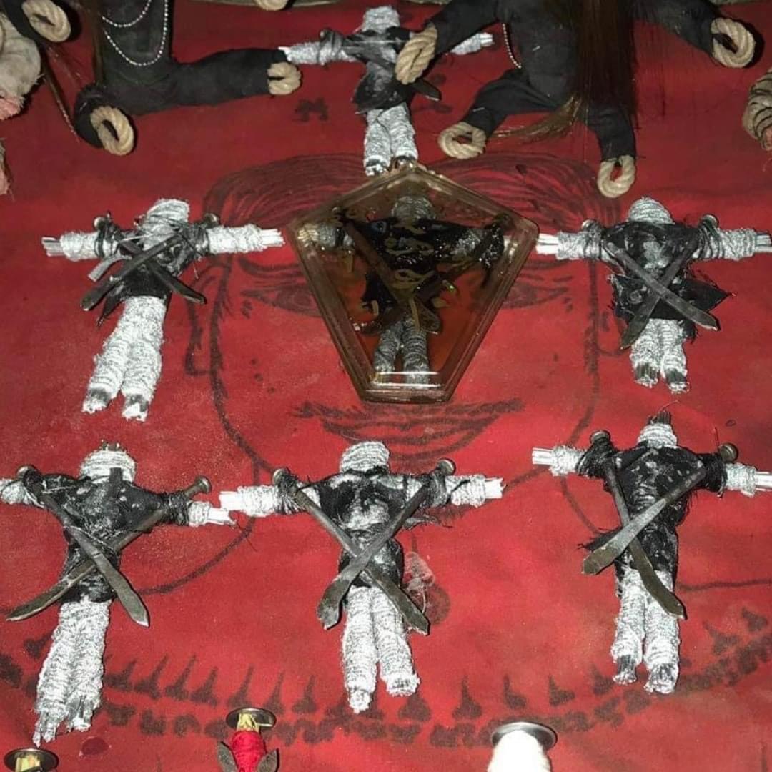Tre nứa được thầy bó buộc lại thành hình nhân và quấn chỉ đỏ để niệm 32 câu chú tạo nên sự sống cho hình nhân cùng dung dịch dầu nam man prai để gi tăng sức mạnh.